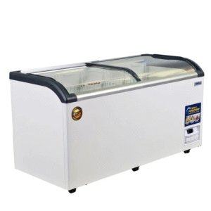 Congelador de gran capacidad, ideal para exhibir y conservar productos congelados. Cuenta con tapa de vidrio curvo deslizante, iluminación LED y 5 canastillos para organizar fácilmente. Su diseño con ruedas facilita el traslado y su sistema de temperatura ajustable mantiene todo fresco y visible. Perfecto para supermercados y tiendas
