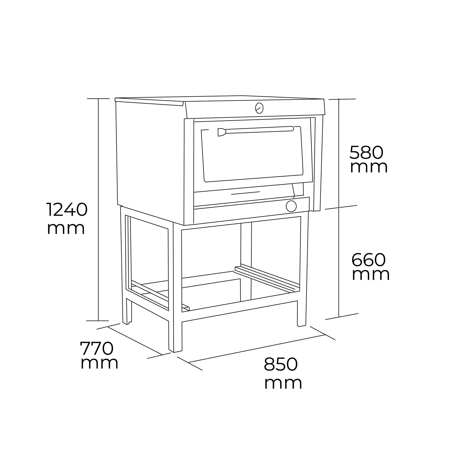 La cámara del horno industrial está fabricada completamente con acero inoxidable, su aislamiento térmico de lana mineral permite lograr temperaturas ideales, con una cocción pareja. En su base, los ladrillos refractarios logran homogenizar la temperatura en toda la cámara de cocción. Los paneles, respaldo y techo son fabricados en Acero Galvanizado de gran calidad. Utilizado en negocios de panadería artesanal.